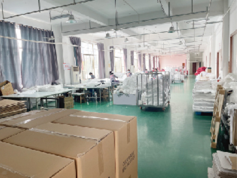 In termini di strutture, la nostra fabbrica vanta una base di produzione standardizzata di 8.000 metri quadrati dotata di 12 linee di produzione, che coprono l'intero processo dalla tessitura e taglio del tessuto alla cucitura e all'ispezione del prodotto finito. Abbiamo importato macchine per cardare tedesche e attrezzature per cucire di precisione giapponesi, raggiungendo una capacità produttiva giornaliera di 500 set di biancheria da letto e 2.000 trapunte, rispondendo in modo efficiente agli acquisti di grandi volumi degli hotel e alle esigenze di rifornimento di emergenza.